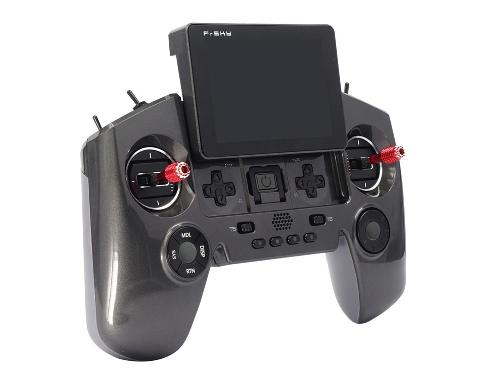 Die Einschalttaste und 4 Standard-Trimmknöpfe befinden sich unter dem Bildschirm. Der TWIN X Lite S verfügt über zusätzliche 2 Trimmungen und 4 anpassbare Tasten, die sich auf dem Bedienfeld der Fernsteuerung befinden und eine einfache Bedienung ermöglichen. Die Taster, Schieberegler und Schalter sind auf der Oberseite leicht zu erreichen. Die Taster wurden neu designt und verbessert, um einem grösseren Tastendruck standhalten zu können.
