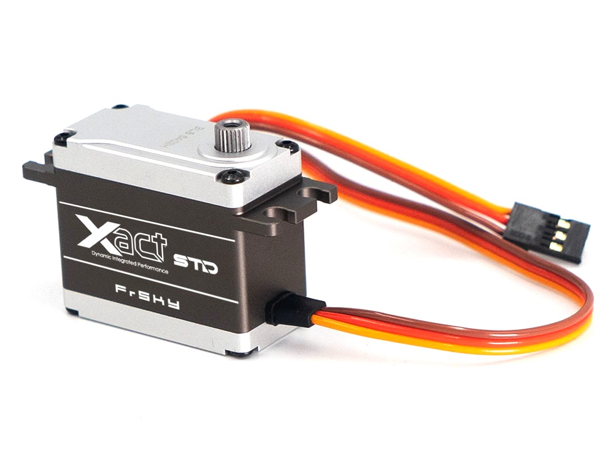 Die Xact-Serie von FrSky zeichnet sich durch ein vollständig CNC-gefrästes Aluminiumgehäuse und robuste Metallgetriebe aus. Diese Hochvolt-Servos unterstützen Spannungen bis zu 8.4V und bieten sowohl hohe Geschwindigkeit als auch starkes Drehmoment.