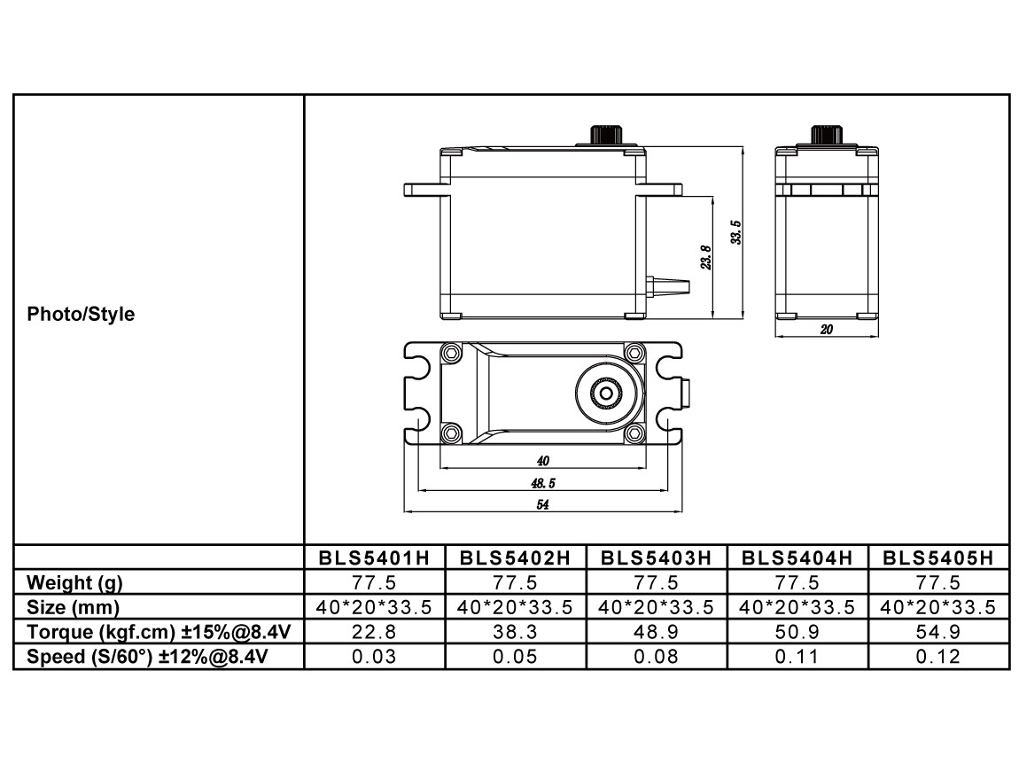 Stellkraft 8.4V – 54.9 kg.cm