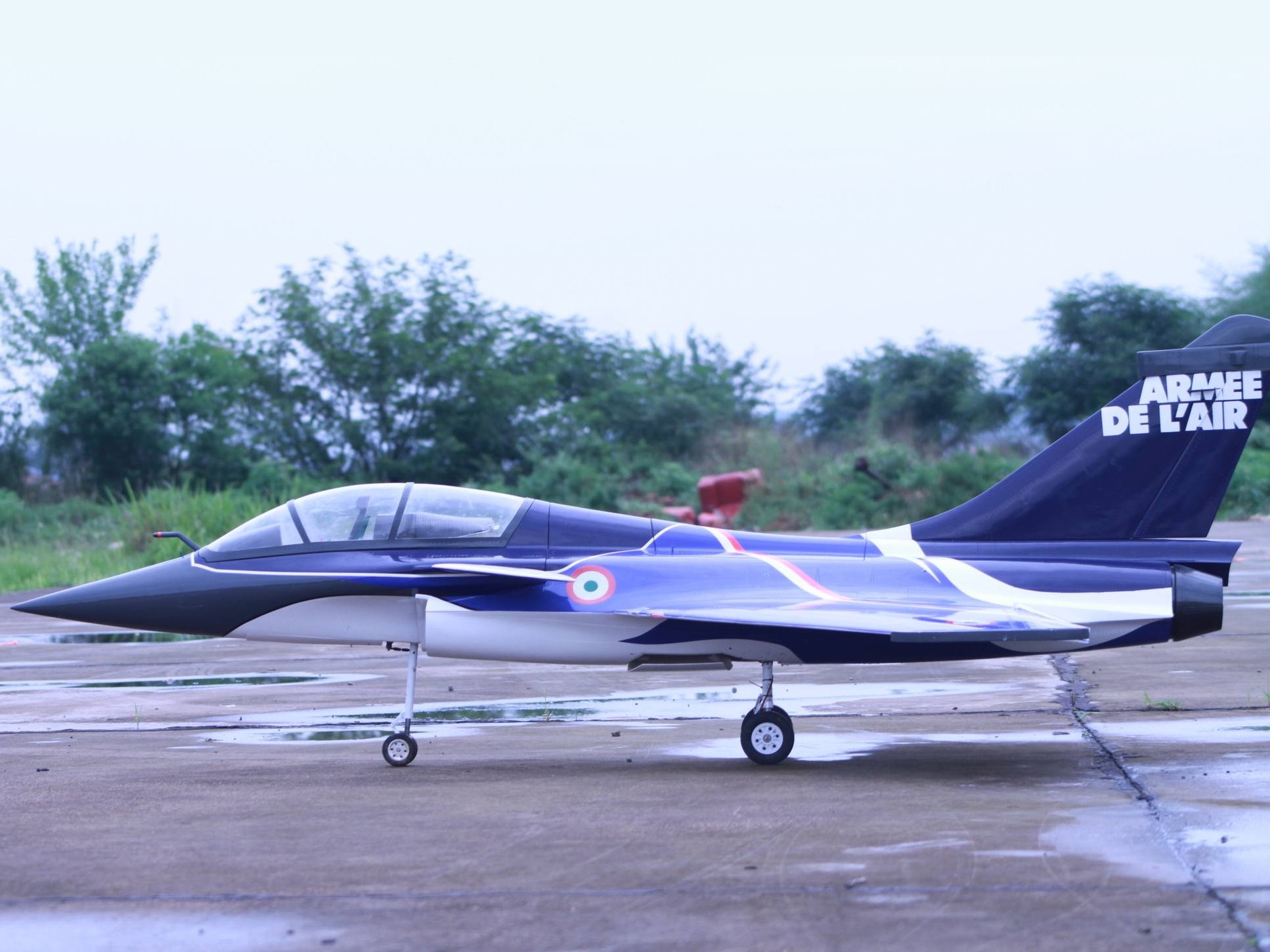 Das Modell ist weitgehend vorgefertigt und innert kurzer Zeit bereits flugfertig. Der Rafale Jet verfügt über ein gefedertes Einziehfahrwerk, alles für den Einbau einer Turbine ist vorbereitet. Alle Komponenten wie das gefederte Fahrwerk, Tanks, Schubrohr, Servos, usw. sind bereits eingebaut.