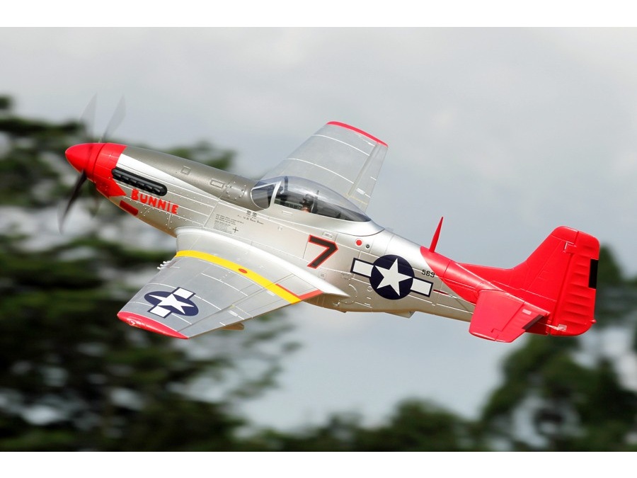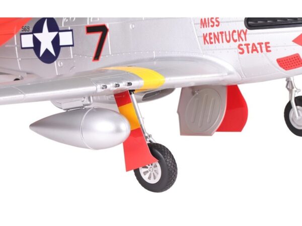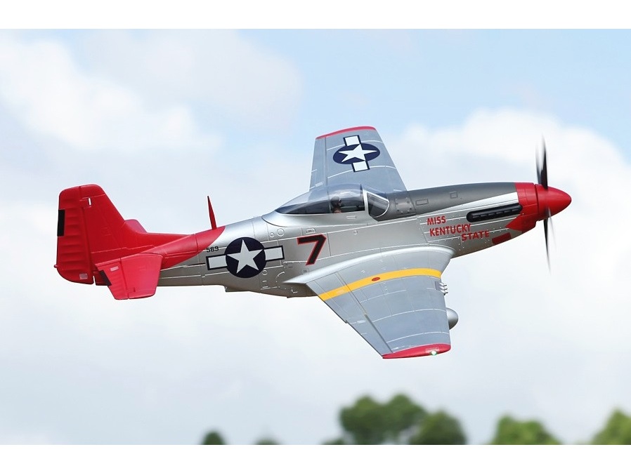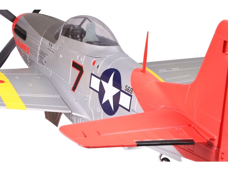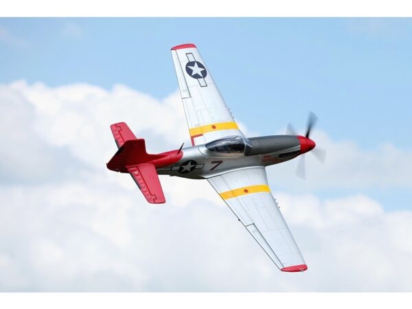 Die P-51 Red Tail besticht durch eine detailgetreue Optik mit vielen Details. Das Modell verfügt über Landeklappen und ein elektrisches Einziehfahrwerk. Angetrieben wird die Mustang durch einen starken Brushless-Outrunner in Kombination mit einem 85A-Brushless-Regler und einem 4-Blatt Propeller. Tiefflug, Rollen und schnelle Turns in Luftkampf-Manier sind eine wahre Freude mit diesem Modell.