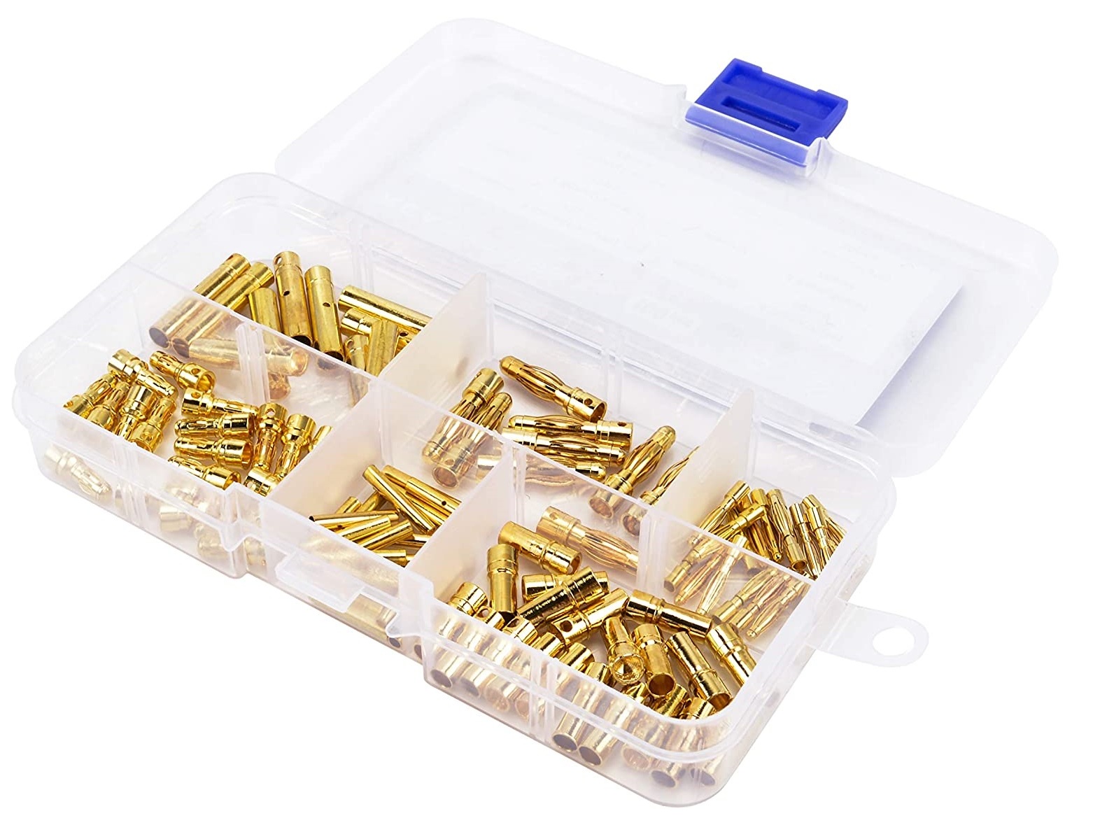 Goldkontaktstecker / Goldstecker und Buchse – 2.0, 3.5, 4.0mm – 100er-Set