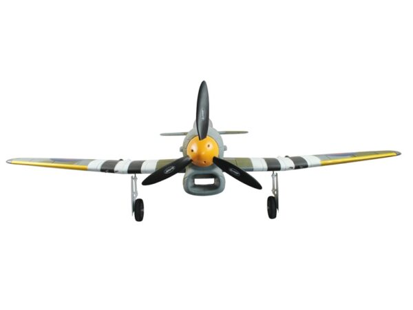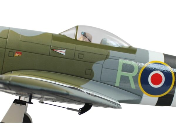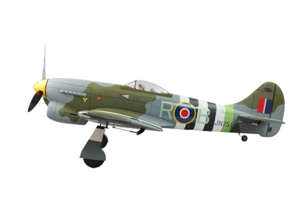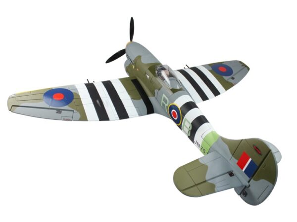 Die Hawker Tempest war ein Kampfflugzeug der Zeit des Zweiten Weltkrieges aus britischer Produktion. Hersteller war die Hawker Siddeley Aircraft Co.. Der Tiefdecker wurde ab 1944 von der Royal Air Force (RAF) eingesetzt. Das Modell verfügt über viele Details, wie die fertig lackierte Motorhaube, die Aufkleber und das bereits ab Werk installierte Einziehfahrwerk. Aber nicht nur die Optik ist bei der Hawker etwas besonderes, sondern auch ihre Flugeigenschaften kommen dem Original sehr nahe.