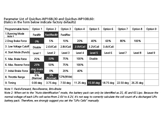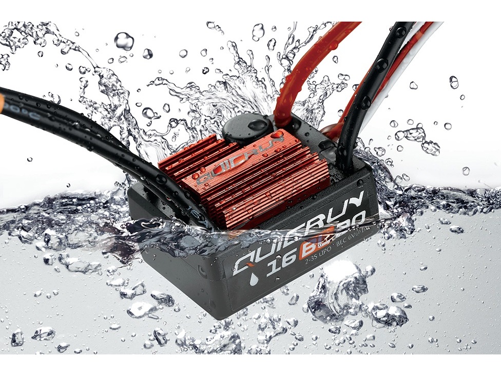 Der Quicrun-Regler ist für sensorlose Brushless-Motoren ausgelegt. Die Regler können wahlweise aus LiPo- oder NiMH-Akkus versorgt werden. Die Elektronik wird durch einen Microprozessor angesteuert. Die Software verfügt über unzählige Parameter, die sich individuell programmieren lassen. So lassen sich die Regler für nahezu sämtliche Anwendungen im Car-Bereich anpassen und bieten maximale Effizienz bei korrekter Auslegung des Antriebsstrangs. Alle Quicrun-Regler mit der Bezeichnung WP verfügen über ein wasserdichtes und staubgeschütztes Gehäuse. Der externe Port macht den Anschluss einer Programmkarte besonders einfach.