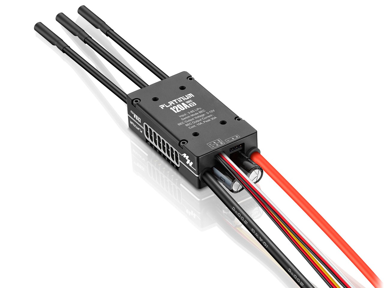 Der Platinum 120A HV V5 ist ein äusserst leistungsfähiger und konsistenter Regler mit 5-12V Switch BEC für den 420-520er Flugbereich. Dafür sorgt der verbaute 32-Bit-Prozessor in Kombination mit einem speziell entwickelten Algorithmus zur Drehzahlgenauigkeit, wodurch sich die Performance des Reglers deutlich abhebt von ähnlichen Reglern auf dem Markt. Neben dem Algorithmus ist der Platinum 120A V5 mit diversen Protokollen ausgestattet, die verschiedenen Sender-System gestatten, die Daten des Reglers auszulesen. Dazu zählen beispielsweise das Mikado VBar-System und Futaba S.BUS2.
