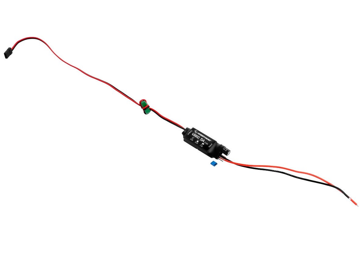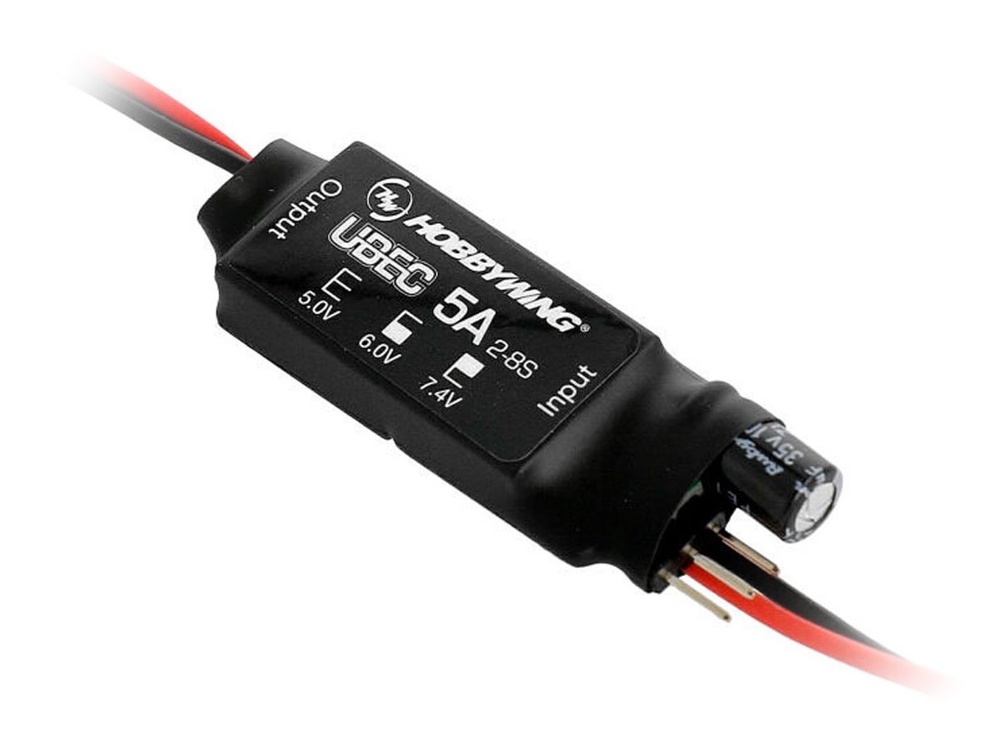 Dieses UBEC ist ein externer DC-Spannungsregler, der im Switch-Modus arbeitet. Seine Spannung zieht er sich aus 2-8S LiPos und liefert dabei kontinuierlich und stabil 5A Ausgangsstrom bzw. kurzzeitig sogar auch 15A. Auf diese Weise schafft es das UBEC den Strom für andere Geräte eines RC Modells bereitzustellen und eignet sich ausserdem hervorragend für alle Starrflügler-Flugmodelle.
