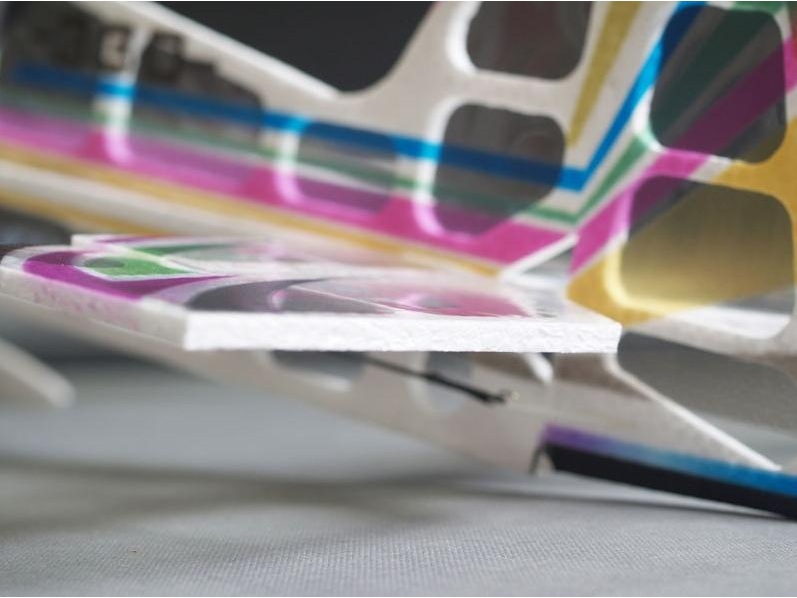 Indoor-Kunstflugmodell in neuartiger, professioneller Leichtbauweise. Der Flieger ist bereits mit leichter Folie bespannt.