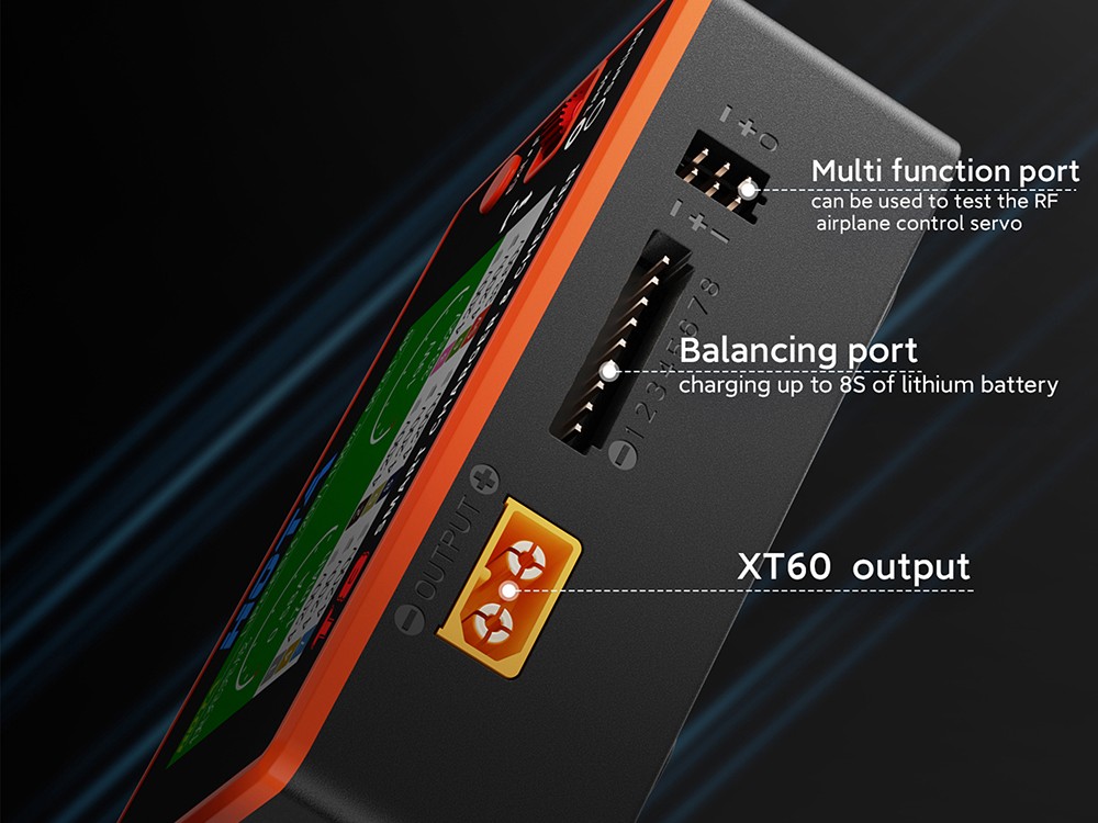 Das HOTA T8 ist ein leistungsstarkes und kompaktes Ladegerät für den DC-Betrieb. Es ermöglicht schnelles und sicheres Aufladen von Akkus verschiedenster Typen. Mit bis zu 650 Watt Ladeleistung und einem maximalen Ladestrom von 22 Ampere eignet es sich perfekt für den Einsatz im RC-Bereich. Dank integriertem Balancer, breiter Kompatibilität und intuitiver Bedienung ist es sowohl für Einsteiger als auch für erfahrene Anwender ideal geeignet. Das grosse 2.8 Zoll IPS-Farbdisplay sorgt für eine übersichtliche Darstellung aller wichtigen Ladeparameter.
