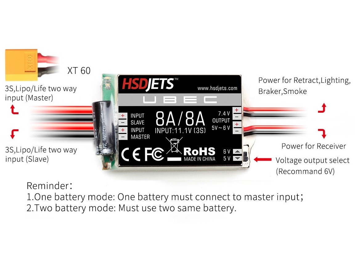 HSDJet UBEC – 3S-4S – 8A/8A mit XT60-Stecker