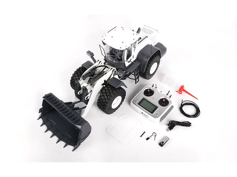 Dieser grosse Radlader im Massstab 1:12 / 1:14 verfügt über ein Hydrauliksystem mit einer enormen Hubkraft/Stosskraft und setzt neue Massstäbe in dieser Modellklasse. Dies auch noch zu einem unvergleichlich günstigen Preis. Das Leergewicht von ca. 20 kg verteilt sich auf eine Totallänge von ca. 80cm. Ein RC-Modell, geschaffen für Kunden, die sich ein kraftvolles, robustes und langlebiges Produkt wünschen. Ein Traum für viele grosse und kleine Jungs!