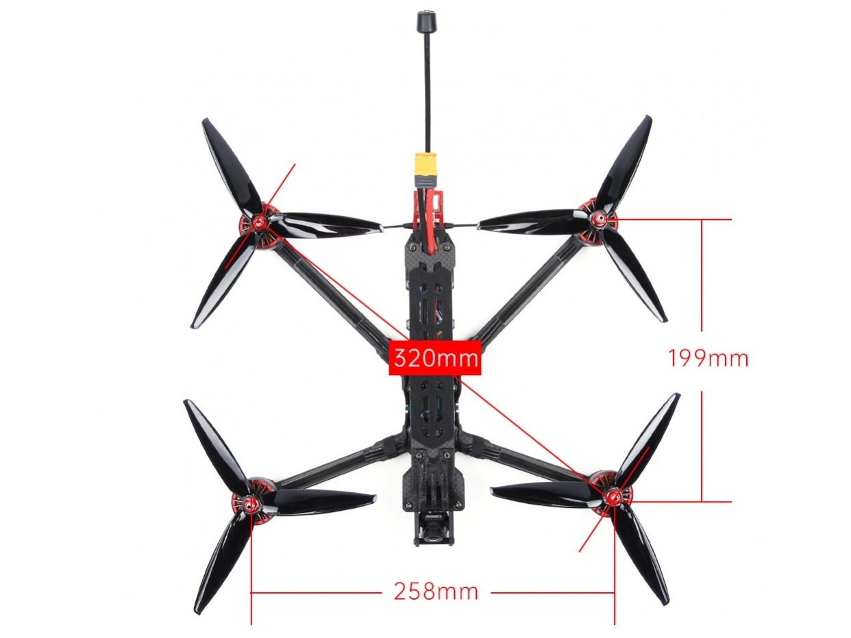 Ein supereffizienter 7-Zoll Long-Range Frame, ideal für grössere Akkus um die Flugzeit zu erhöhen. Der super steife Rahmen sorgt für eine minimale Resonanz und ist für 7-Zoll-Propeller ausgelegt. Dieser Long-Ranger überzeugt durch eine starke Flugstabilität in der Luft.