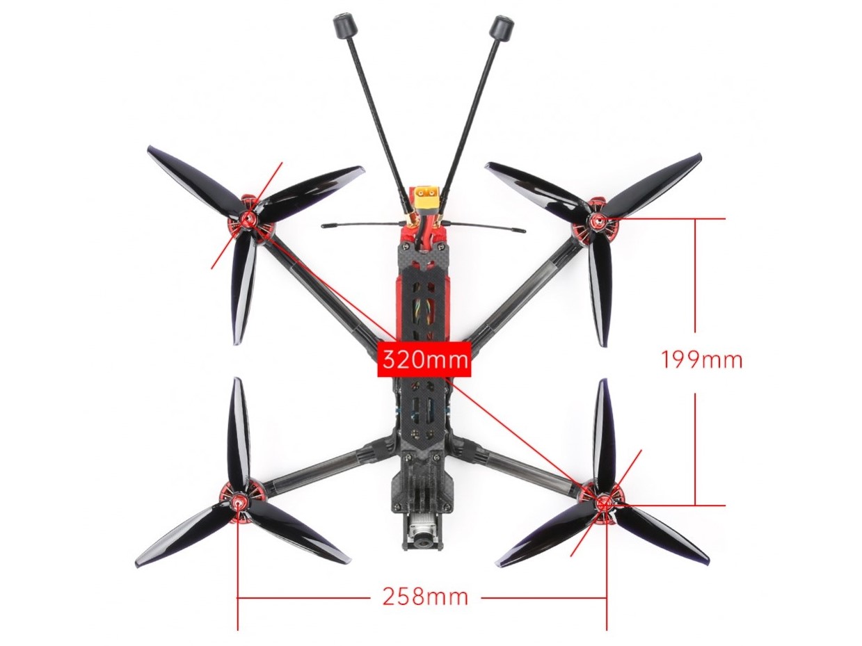 Ein supereffizienter 7-Zoll Long-Range Frame, ideal für grössere Akkus um die Flugzeit zu erhöhen. Der super steife Rahmen sorgt für eine minimale Resonanz und ist für 7-Zoll-Propeller ausgelegt. Dieser Long-Ranger überzeugt durch eine starke Flugstabilität in der Luft.