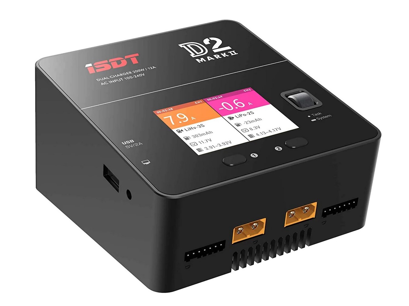 iSDT D2 MK2 mit Netzteil, max. 200 W Leistung, bis zu 12 A Ladestrom, Netzteil 230V, Farbdisplay