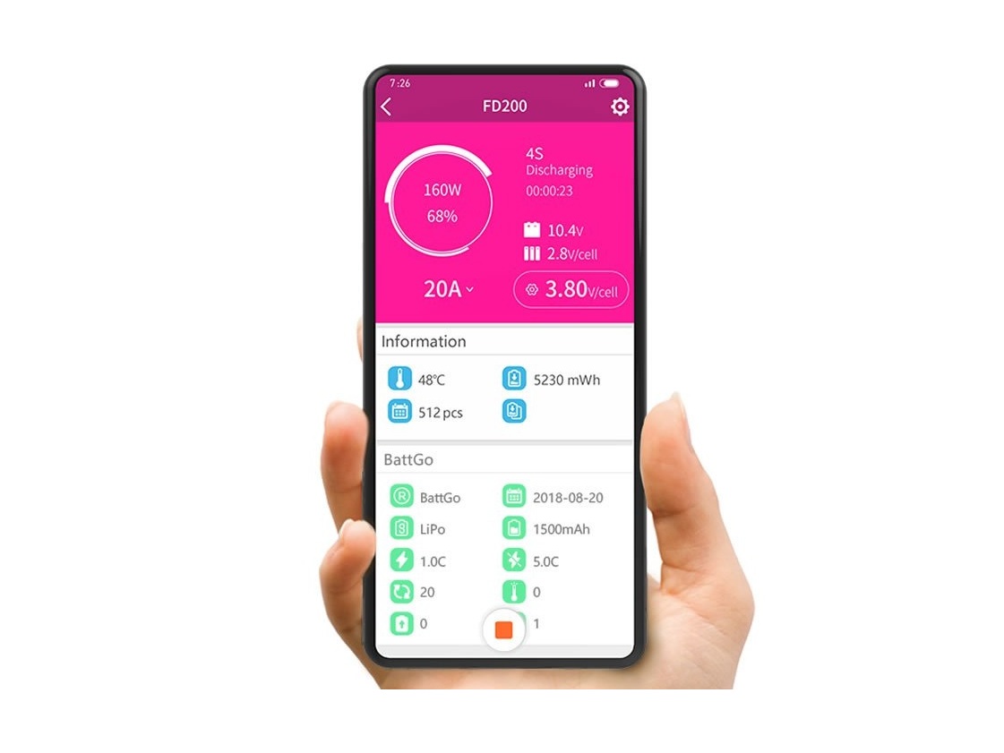 Ideal zum einfachen und schnellen Entladen ihrer grossen Lipo, LiHV, LiFe und Lilon Akkus. Der FD-200 Discharger ist bereits auf 3.8V Lagerspannung voreingestellt. Bedienung, Einstellung und Kontrolle über Handy App möglich.