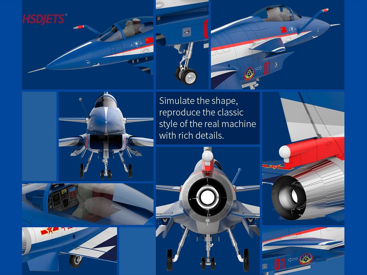 TURBO J-10 Turbinen Jet – in der PNP Version, vorbereitet für den Einbau einer 8kg Turbine. Das Modell ist weitgehend vorgefertigt und innert kurzer Zeit bereits flugfertig. Der Jet verfügt über ein Smoke-System, LED-Beleuchtung und ein gefedertes, elektrisches Aluminium-Einziehfahrwerk mit elektrischer Bremse. Alle Komponenten wie das gefederte Fahrwerk, Tanks, Schubrohr, Digital-Servos, Smokepumpe, u.s.w, sind bereits eingebaut.