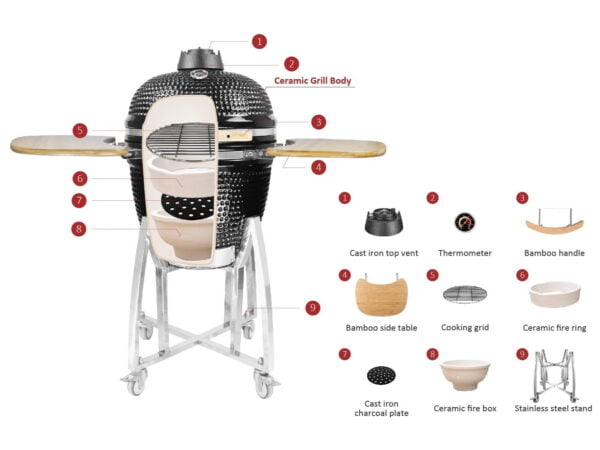 – Keramikgrill mit 2 Ablagen aus Bambus