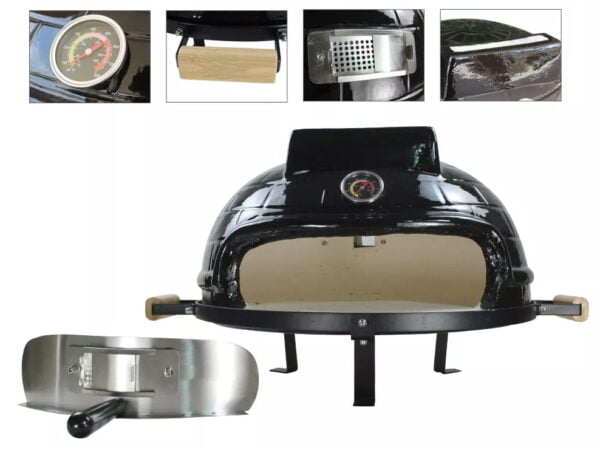 Durch die grosse Öffnung ist dieser Ofen perfekt geeignet für Pizzas bis 28 cm Durchmesser. Dank dem Deckel verlieren Sie beim backen der Pizza weniger Hitze und die Temperatur bleibt konstant hoch.