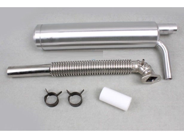 Kanister-Schalldämpfer mit Auspuffkrümmer und Smoke-Anschluss zu DLE55, DA50