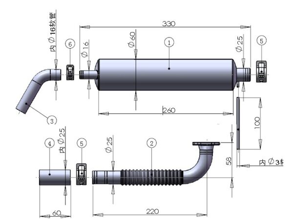 Kanister-Schalldämpfer Original DLE, mit Auspuffkrümmer und Smokeanschluss
