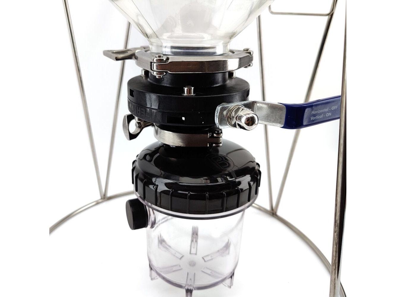 JA, es ist bei weitem der einfachste konische PET-Fermenter, den man auseinandernehmen und bis in alle Ecken und Winkel reinigen kann. Lassen Sie einfach den Druck im Inneren des Behälters ab und lösen Sie die drei Klammern.