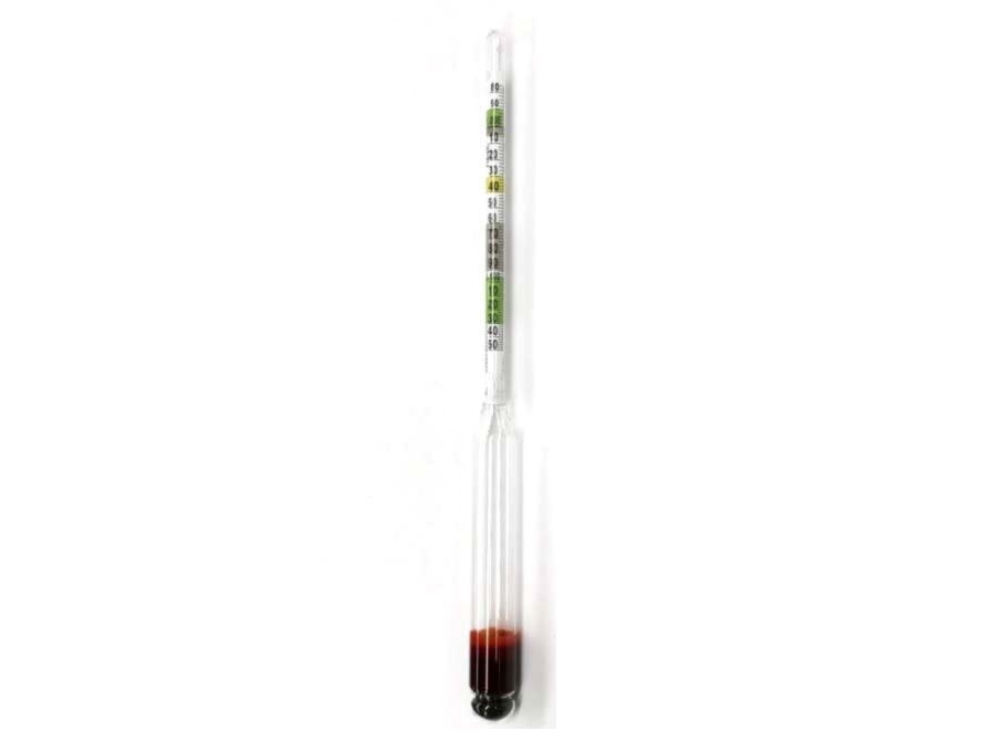 Ein Hydrometer misst die Dichte oder das spezifische Gewicht einer Flüssigkeit. Es wird verwendet, um die Dichte Ihrer Würze zu bestimmen.