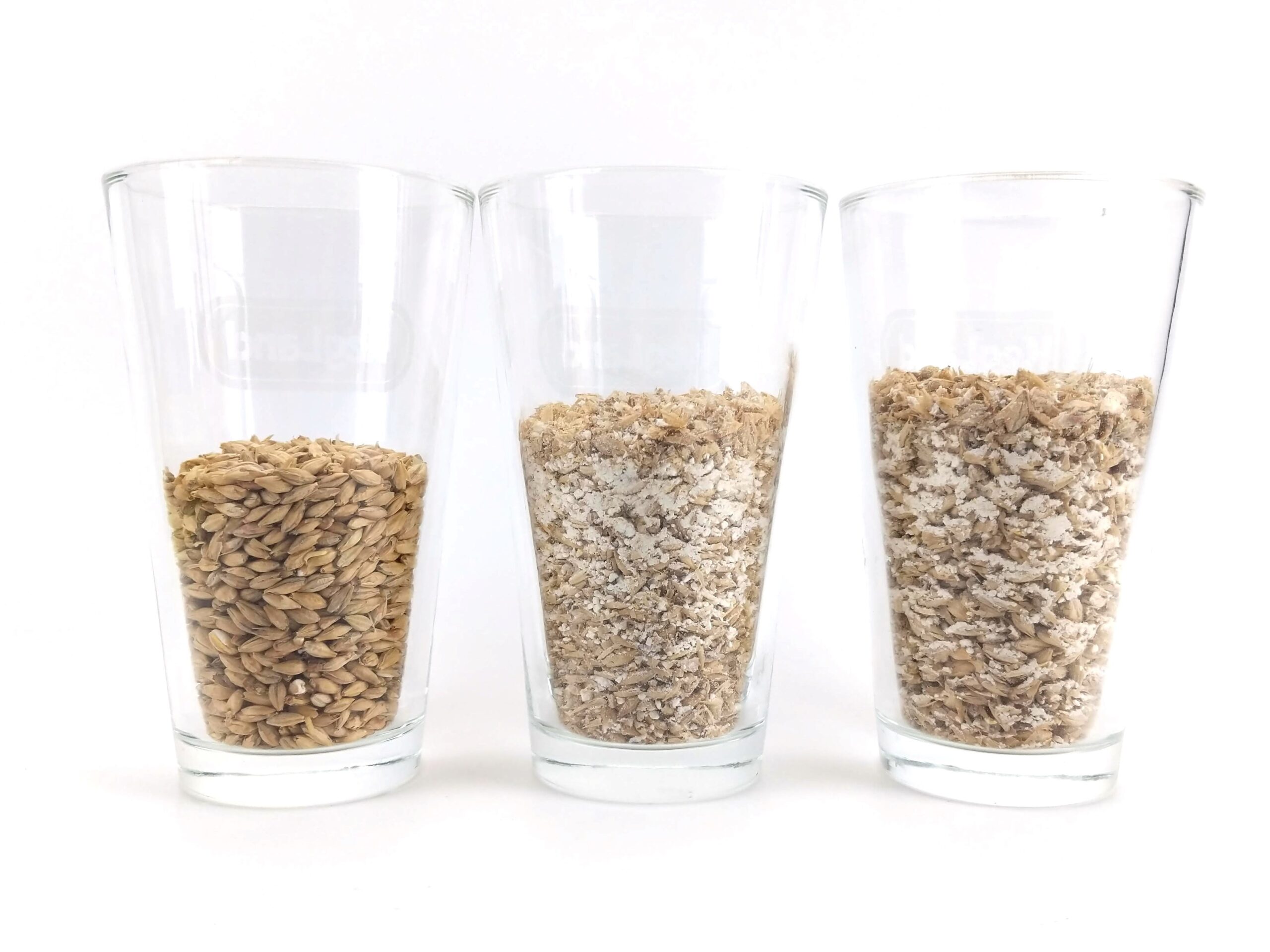3. Das Glas auf der rechten Seite ist das Getreide, welches durch die MaltZilla-Mühle gelaufen ist.