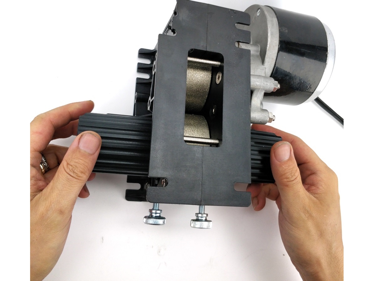 Die meisten Mühlen arbeiten mit einer aggressiven Rändelung, um in das Getreide zu brechen, wenn es durch einen engen Spalt läuft. Das bedeutet oft, dass Ihre Körner in zwei Hälften zerhackt werden. Die MaltZilla arbeitet nach einem anderen Prinzip und die Einstellung des Spalts ist nicht so kritisch. Der MaltZilla verwendet imprägnierte Diamanten, um die Oberfläche des Korns zu greifen und die Reibung, mit der das Korn durch den Spalt gezogen wird, bewirkt eine Scherwirkung. Bei richtiger Einstellung kann dadurch die gesamte Spelze intakt bleiben, was die Gefahr des Verstopfens verringert und die Effizienz erhöht, während die Spelze immer noch effizient genug geöffnet wird, um den gesamten Inhalt des Korns für den Maischeprozess verfügbar zu machen.