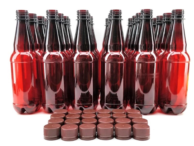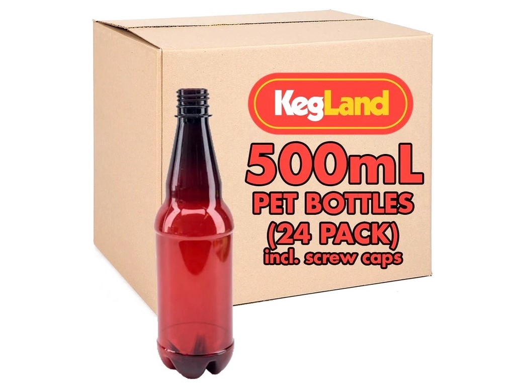 KegLand Bernsteinfarbene PET-Flaschen 500mL (24er Pack) mit Schraubverschluss.
