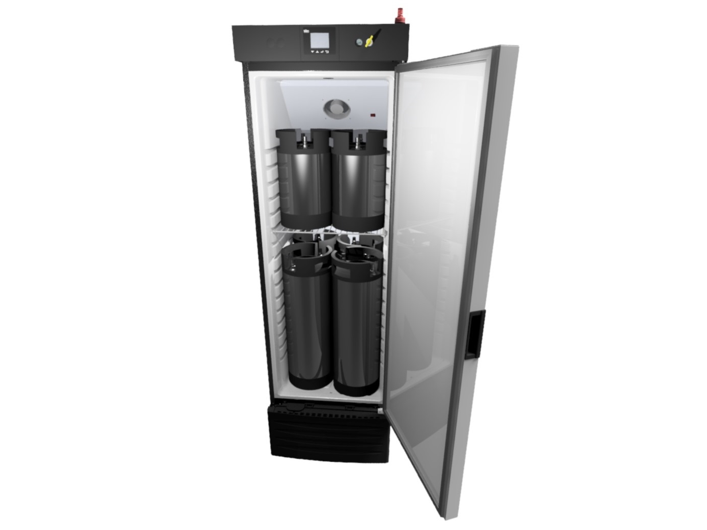 Diese Mehrzweckkammer kann auch als Kegerator verwendet werden. In besonders kalten Klimazonen, in denen die Umgebungstemperatur unter Null liegt, kann diese Kammer Ihre KEG-Fässer erwärmen und sie vor dem Einfrieren bewahren. Diese Kammer hat auch eine höhere Fassungskapazität als ein herkömmlicher Kegerator, der dabei aber die gleiche Grundfläche einnimmt. Dieses Gerät fässt auf dem unteren Boden 4 x 19-Liter-Fässer und eine weitere Schicht von 9,5-Liter-Fässern auf dem oberen Tablar. Für die Montage von Zapfhähnen können Sie eigene Löcher durch die Tür bohren.