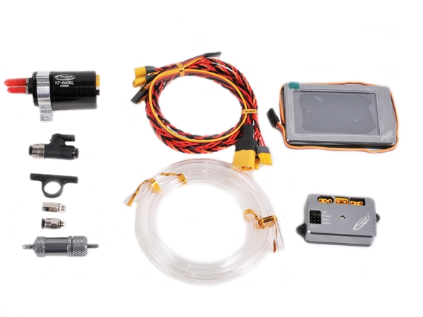 KingTech K65G4+ mit Autostart, integrierter Fod Screen, KT Restart ECU, Anzeige- und Programmiergerät, Kerosinpumpe, Schlauch- und Kabelsatz, Absperrhahn, Befestigungsschelle und Bedienungsanleitung.