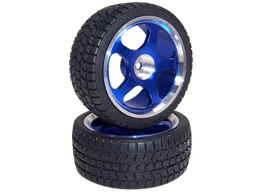 2 Stück Alu Komplettrad 5-Speichen blau zu RC Cars 1:10