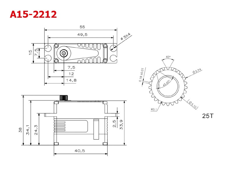 Stellzeit bei 6.0V: 0.15 sec/60°