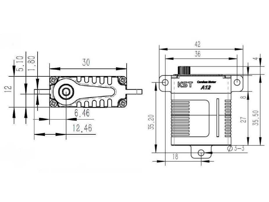 KST Servo A12-T - Torque - 12mm, Alu-Gehäuse, Stellkraft 20.0kg/cm