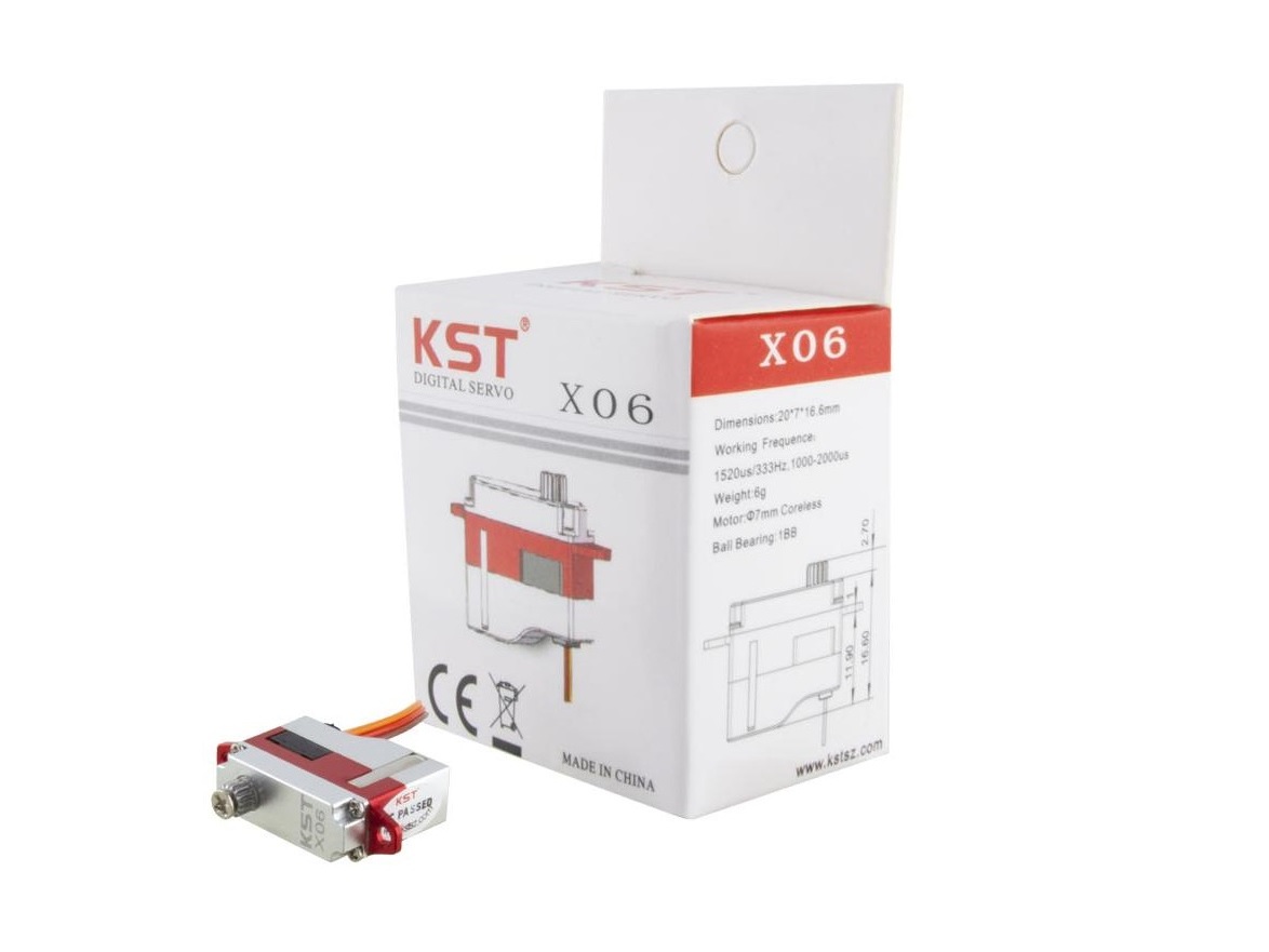Das KST X06 ist das neue High-Performance Mini / Micro Digital Servo von KST im Aluminiumgehäuse mit robusten Metallgetriebe. Das X06 Servo erlaubt den Betrieb mit 1-2 Zellen LiPo Akkus und ist somit universell in vielen Modellen einsetzbar. Optimal ist das KST X06 durch seine hohe Stellgeschwindigkeit, extrem hohen Drehmoment und der sehr guten Rückstellgenauigkeit für den Einsatz in der HLG und DLG Klassen geeignet.
