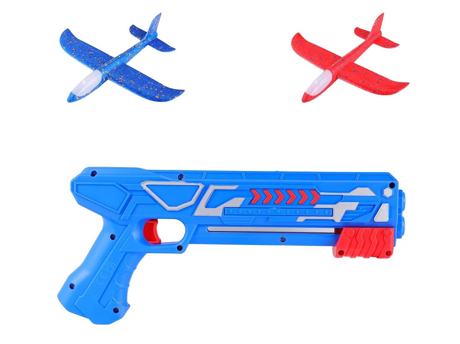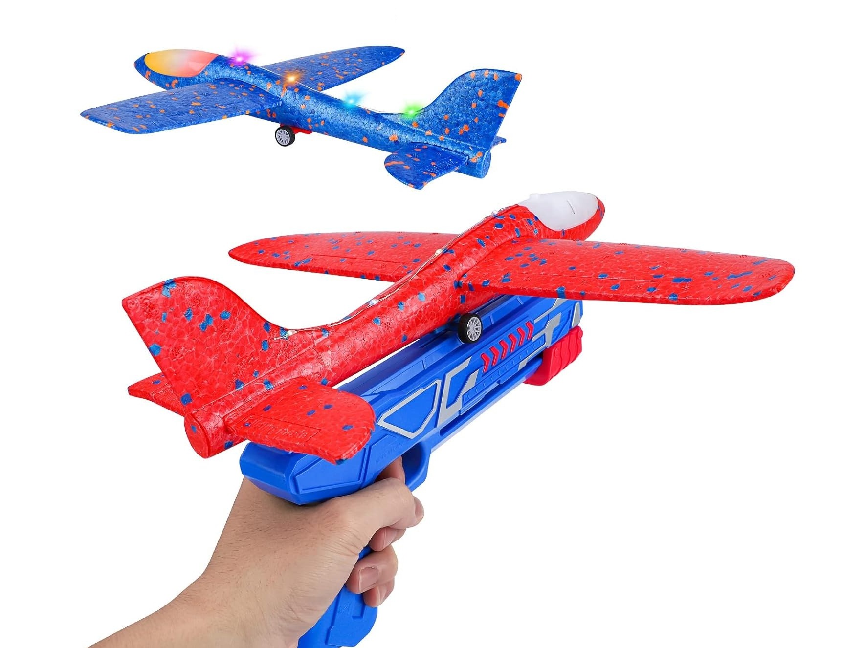 LED Wurfgleiter - Segler - 34cm mit Katapult - in blau