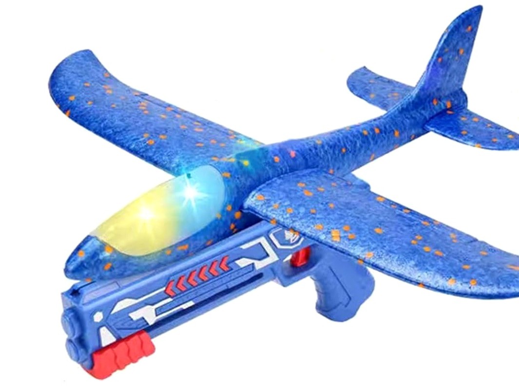 LED Wurfgleiter – Segler – 34cm mit Katapult – in blau