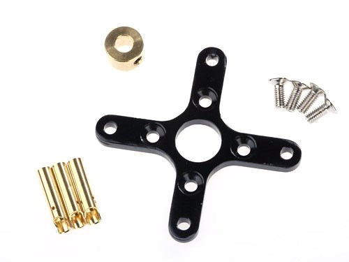 Die Auslieferung erfolgt mit Motorhalter, Propelleradapter für 4mm Welle und Anschlusssteckern 3.5mm.