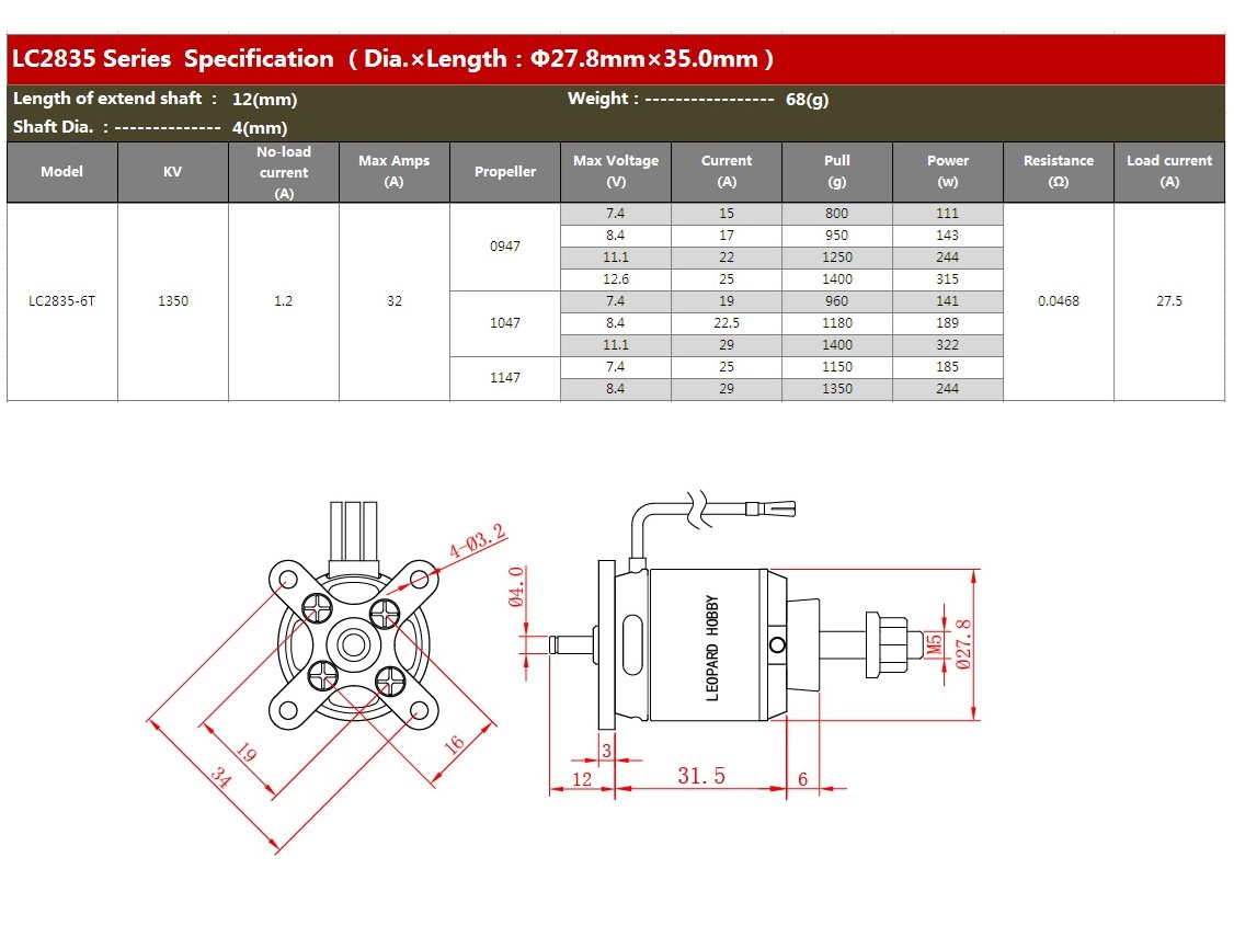 1x Leopard Hobby Brushless Motor LC2835-6T