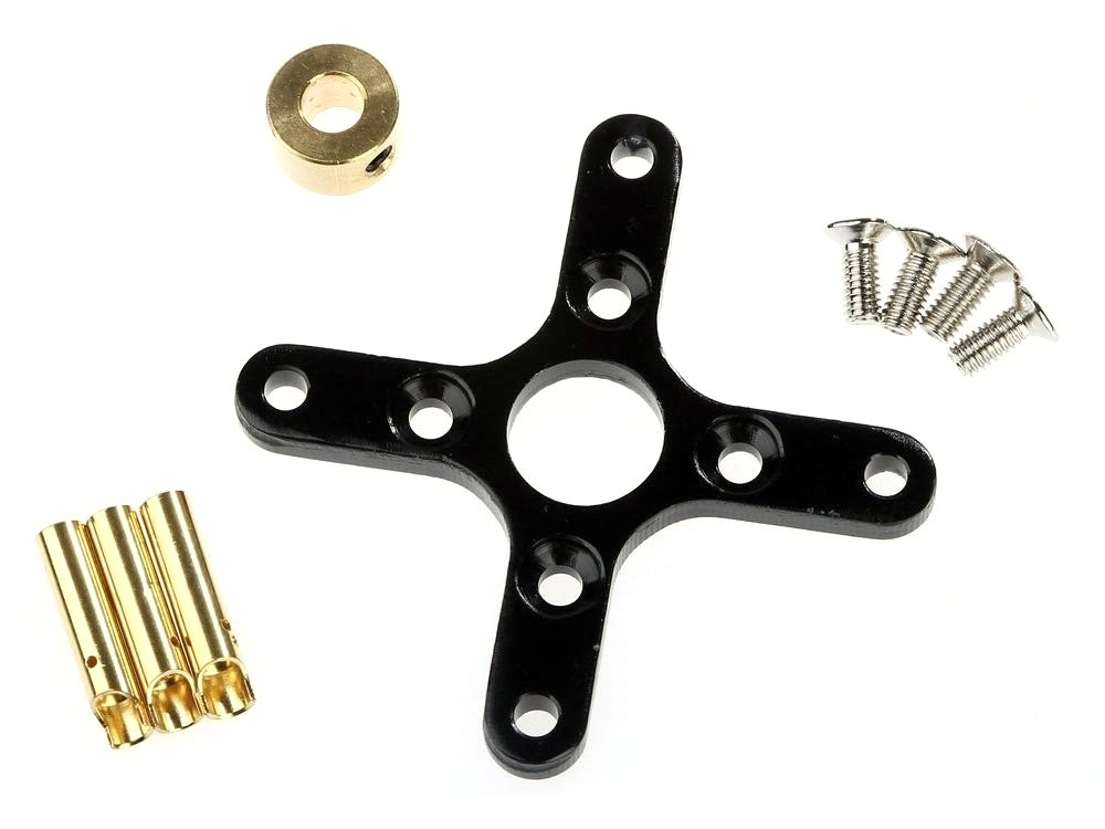 Die Auslieferung erfolgt mit Motorhalter, Propelleraufnahme und Anschlusssteckern.