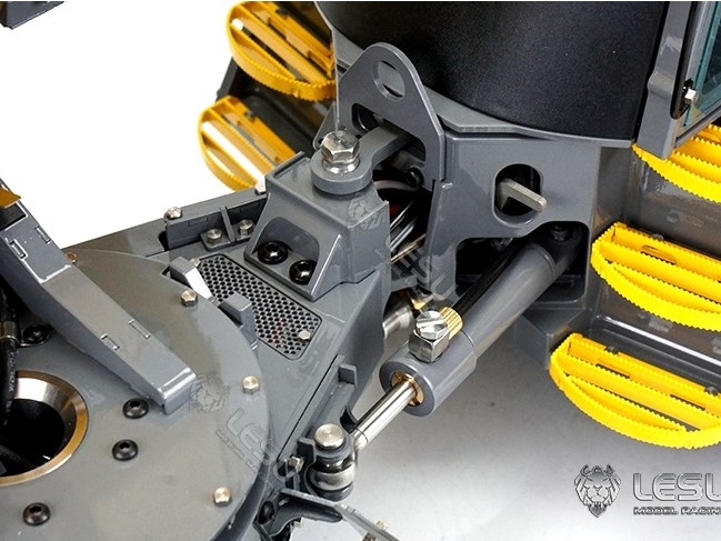 Der 6MDX ist bereits mit Beleuchtung, Servos, Reglern, Hydraulik und einem Soundsystem ausgestattet. Die Wanne ist um fast 180° drehbar und hat einen Neigungswinkel von 74°. Dank des sperrbaren Allradantriebs kommt der 6MDX auch durch schwieriges Gelände. Die Knicklenkung mit einem Lenkeinschlag von 25° wird hydraulisch gesteuert.