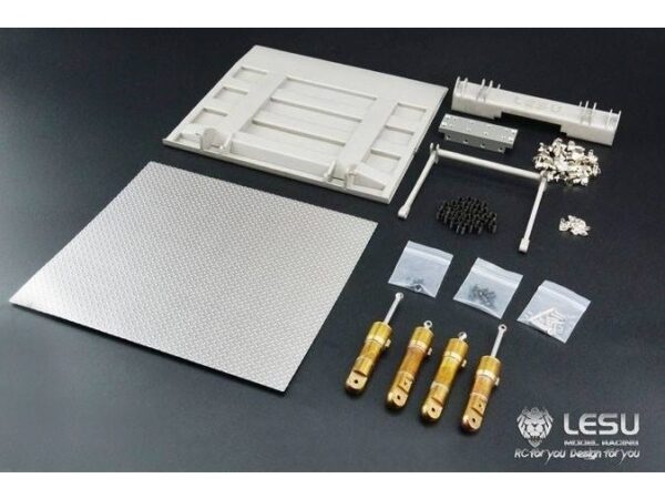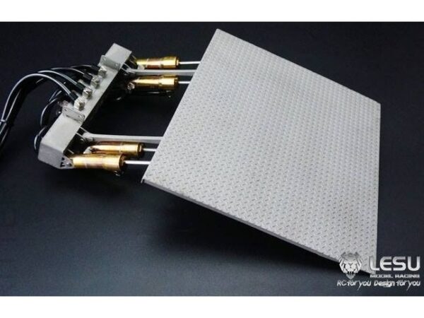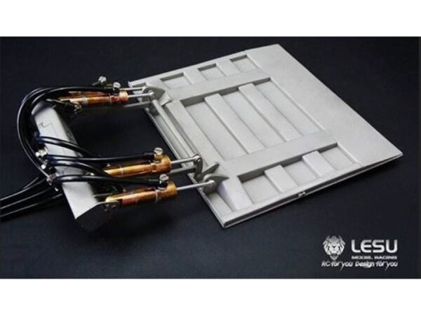 Sehr detailgetreue hydraulisch betriebene Laderampe aus Metall für Tamiya LKWs und andere Fahrzeuge im Massstab 1:14. Es handelt sich hier um einen Bausatz mit allen benötigten Teilen, inklusive 4 Stück Hydraulikzylinder, Hydraulikschlauch und Befestigungsmaterial.