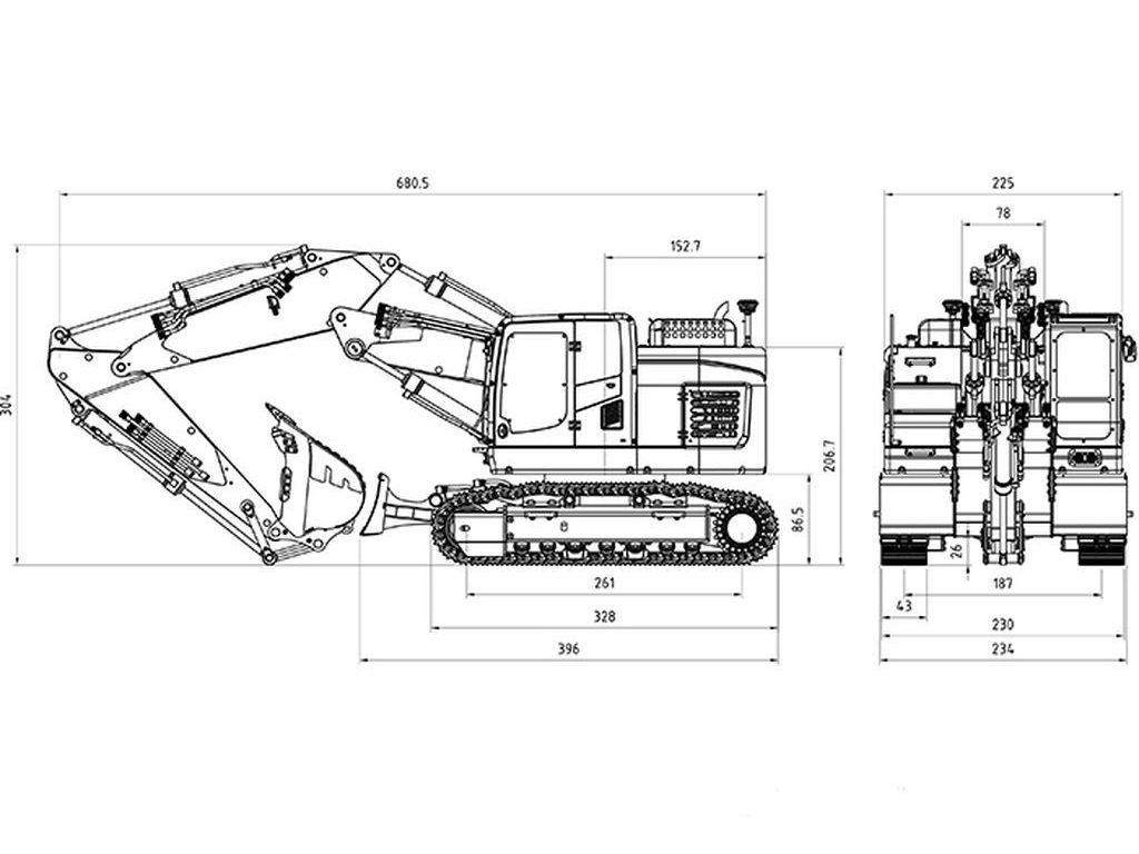 Sehr Hochwertiger Bausatz von Lesu Model Racing für einen Kettenbagger im Massstab 1:14. Gefertigt aus Edelstahl, Messing und Aluminium. Der Bausatz wird inklusive Motoren, Hydraulikanlage mit Brushless-Pumpe und Regler geliefert.