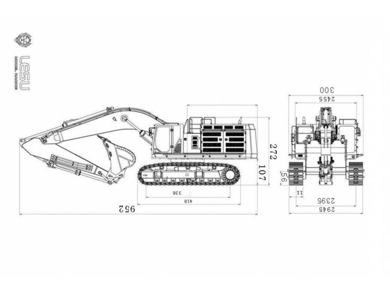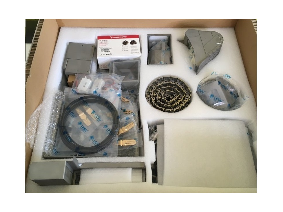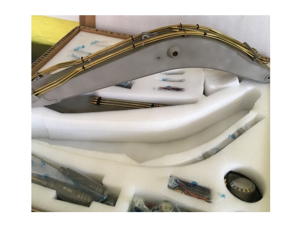 Sehr Hochwertiger Bausatz von Lesu Model Racing für einen Kettenbagger im Massstab 1:14. Gefertigt aus Edelstahl, Messing und Aluminium. Im Bausatz sind alle benötigten Komponenten zum Aufbau und Betrieb enthalten, ausser Fernsteuerung, Akku, Licht und Sound.