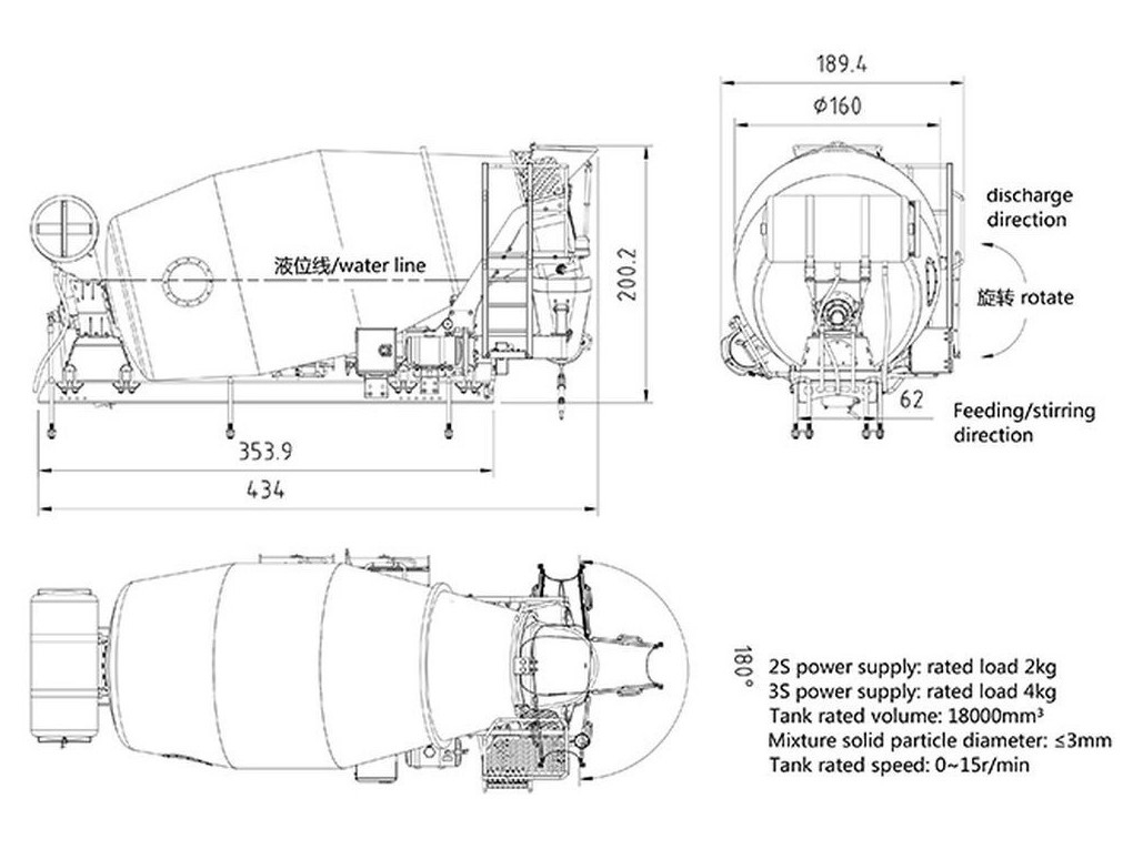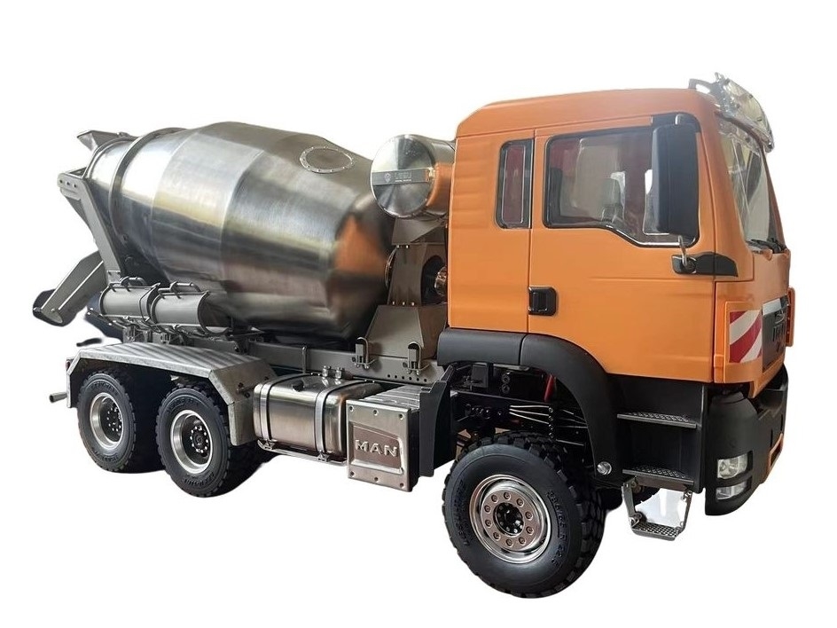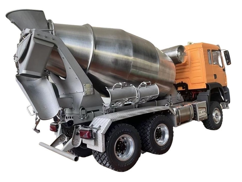 Dieser detaillierte Truck im Volvo-Look verfügt über einen 6WD Antrieb mit elecktrisch betätigtem Mischer imTamiya-Massstab 1:14. Das Chassis wurden aus Aluminium gefertig und der Mischer aus Edelstahl. Bis auf das Fahrerhaus ist das Modell komplett vormoniert.
