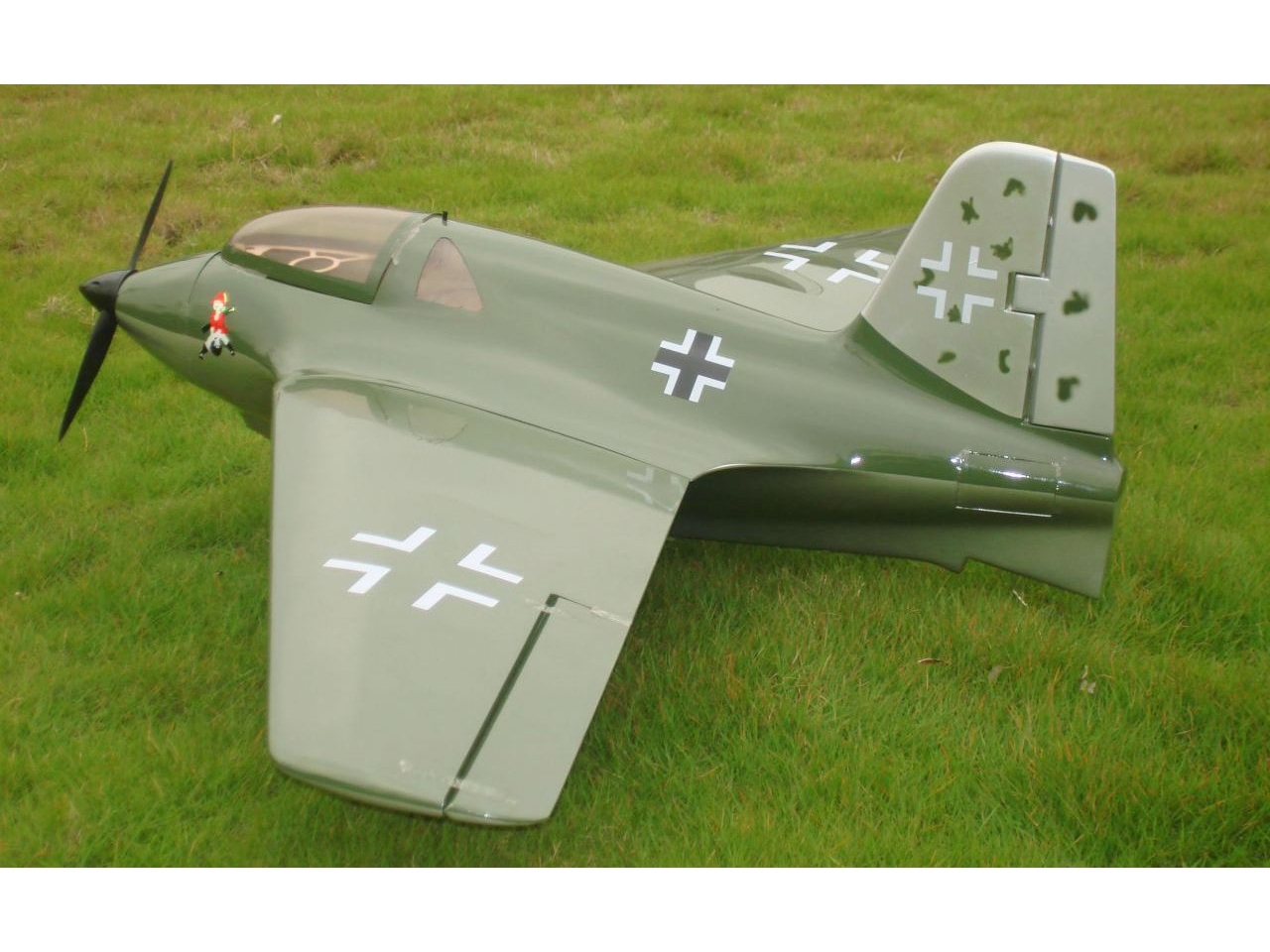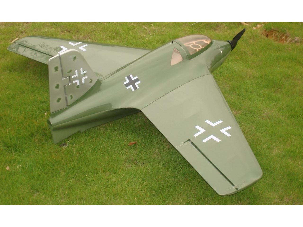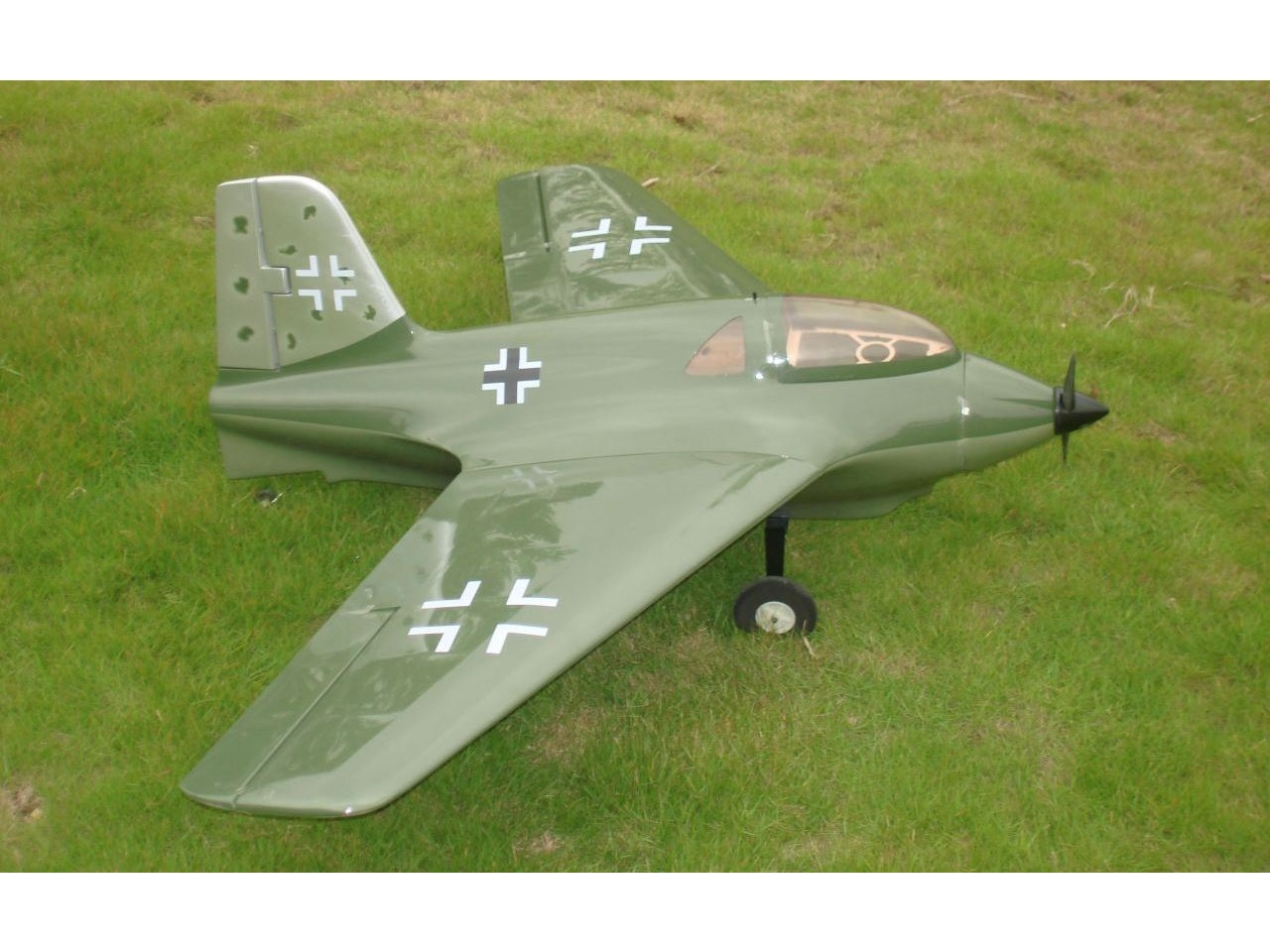 Messerschmitt ME-163. Das Modell verfügt über einen GFK-Rumpf, die Tragflächen sind in extra starker Holzausführung gefertigt.