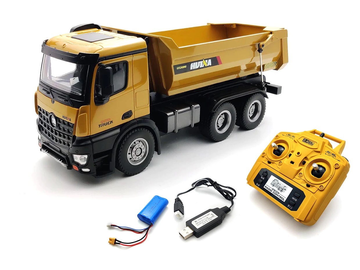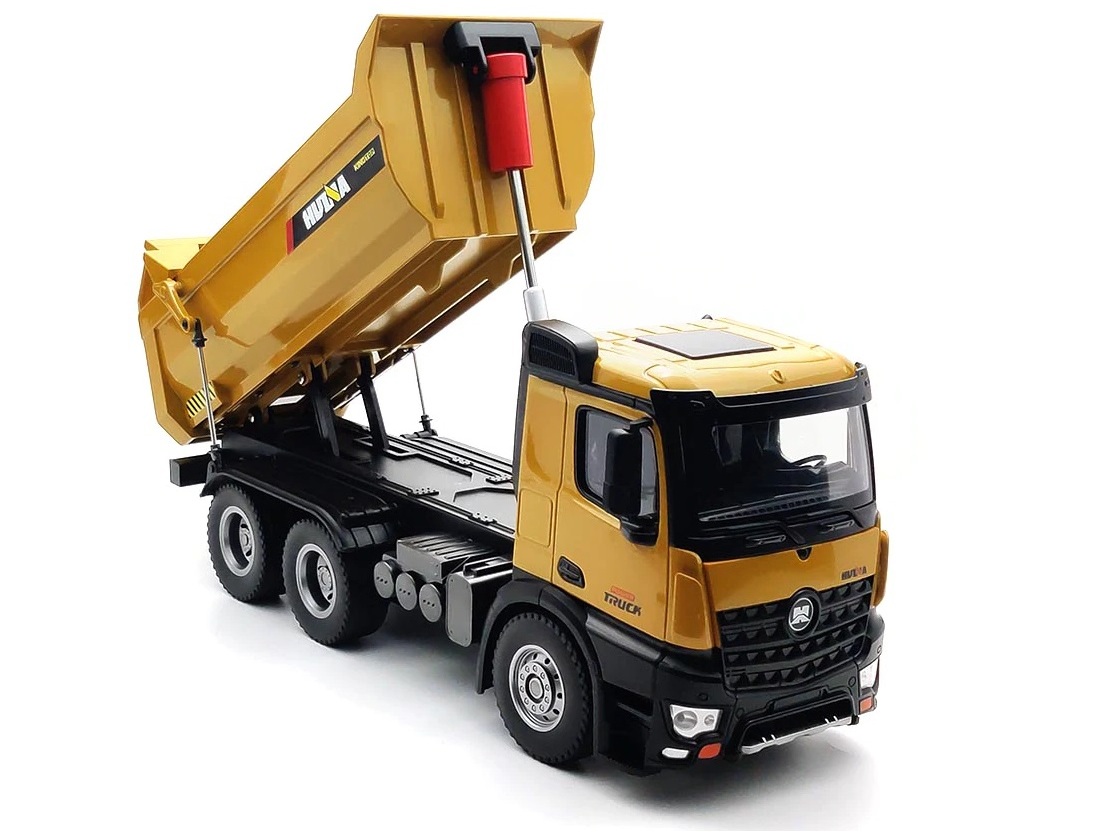 Das Modell im Massstab 1:14 lässt praktisch keine Wünsche offen. Der RC-Kipper ist vollproportional steuerbar, die Kabine, der Kipper und diverse Anbauteile wurden aus Metall gefertigt. Dank dem 6×4 Antrieb ist dieser RC-Truck auch im groben Gelände noch einfach zu manövrieren. Dieser hochwertig verarbeitete LKW schliesst die Lücke zwischen Spielzeug und dem hochpreisigen Funktionsmodellbau. Die Geländefähigkeit in Verbindung mit der spritzwassergeschützten Elektronik sorgen für ungetrübten Spass und für eine lange Haltbarkeit der einzelnen Komponenten.