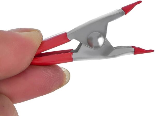 Die Federklemme eignet sich insbesondere für komplexe Spannaufgaben im Modellbau oder schwer zu erreichende Bereiche sowie zum Fixieren empfindlicher Werkstücke, Ecken oder Kanten. Die hochwertige Klemmzwinge besteht aus Metall während die Griffe und das Mundstück gummiert sind.