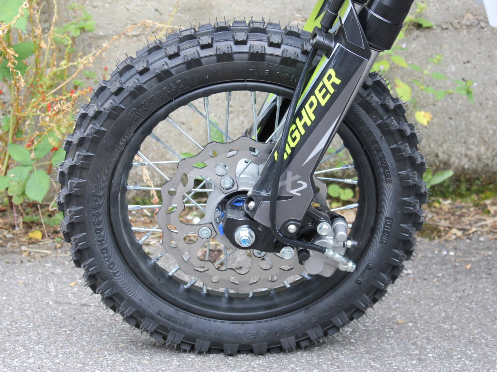Dieses Bike beschleunigt dank eines super starken 50ccm Motor mit 10.5 PS schnell auf End-Geschwindigkeit. Gutes Festhalten am Lenker ist angesagt.