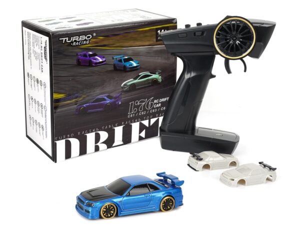Mini Turbo Racing C64 – blau – RC Car – RTR Komplett Set mit Gyro – 1:76