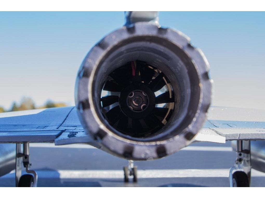 Dieses Modell von Freewing wird von einem 80mm EDF im mit 12-Blatt Rotor angetrieben. Der Antriebsstrang sorgt für einen perfekten Jet-Sound und geniale Flugleistungen. Wie bei Delta-Flüglern üblich sind die Flugeigenschaften absolut zahm, auch bei niedrigen Geschwindigkeiten.
